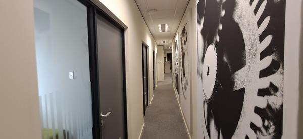 The interior includes a welcoming reception area, two expansive open-plan workspaces filled with natural light, multiple boardrooms and meeting rooms, private offices, and two kitchenettes for staff convenience. A private outdoor seating area provides the perfect breakout space, while shared male and female bathrooms are conveniently located just outside the unit.