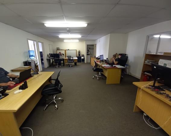 Mezzanine office: Big open plan office, 2 separate offices, kitchenette and staff toilet.
