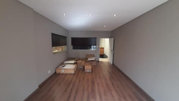 The warehouse has been designed for efficiency, with a large roller shutter door allowing seamless loading and offloading, good internal height to the eaves, and a mezzanine level that adds storage or operational flexibility. Inside, the space includes a welcoming reception area, a standard office with ample natural light, a kitchenette for staff convenience, and separate ablutions for both office and warehouse personnel. Power supply is robust, with 3-phase electricity at 60 amps supporting a wide range of commercial uses.