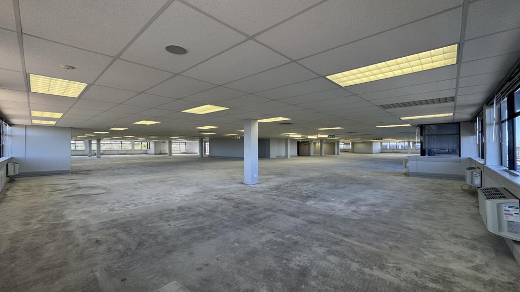 The current layout is an open space with several wall-mounted and ceiling-mounted air conditioner. Inside the unit is a waterpoint ready to be connected. Apple windows allow for natural light to enter. Several sliding doors face Plattekloof Road and lead out onto small balconies.