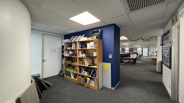 The 814m2 office occupies the entire top floor of Panorama House, offering panoramic views of Cape Town, Table Mountain, and the airport. The current layout includes a spacious reception area that divides the unit into two functional wings. From the reception, two boardrooms with beautiful views create an impressive first impression for clients. One wing includes a small meeting room, a neat kitchenette, a server room, a large open-plan workspace and two glass-fronted private offices. The opposite wing offers another generous open office area, three private offices, and a large staff canteen that opens onto a balcony boasting uninterrupted views. The layout can easily be reconfigured to suit a new tenants operational needs.
