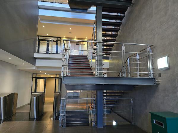 The elevator access to the second floor makes it convenient for all visitors, and the designated parking ensures that everyone has a secure place to park. The exclusive balcony adds a special touch to the office, providing a relaxing break-away space. The office has large windows allowing for spectacular views of Table Mountain.