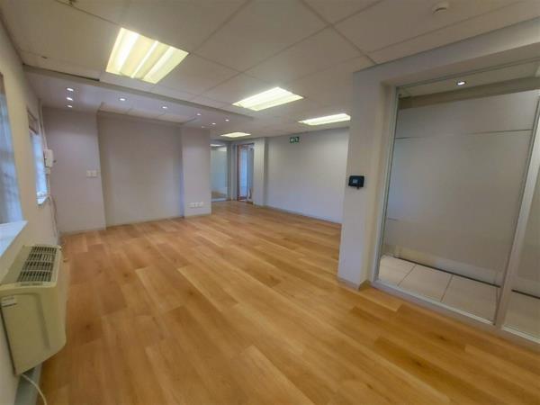 The office space is finished to A-Grade specifications, featuring elegant wooden flooring, a modern double-volume entrance foyer with marble-clad flooring, and a fully air-conditioned interior. The layout includes private offices, a spacious open-plan area, and a large kitchencanteen, that has recently been upgraded, all designed to support productivity and client-facing professionalism. All internal partitioning is dry-walled, allowing for flexible reconfiguration to suit your needs.