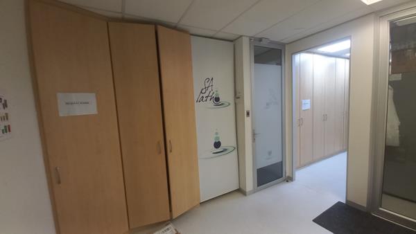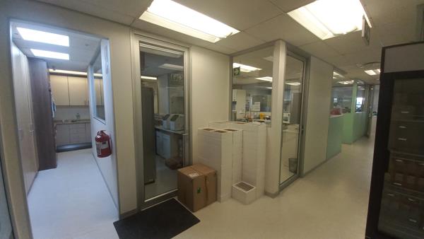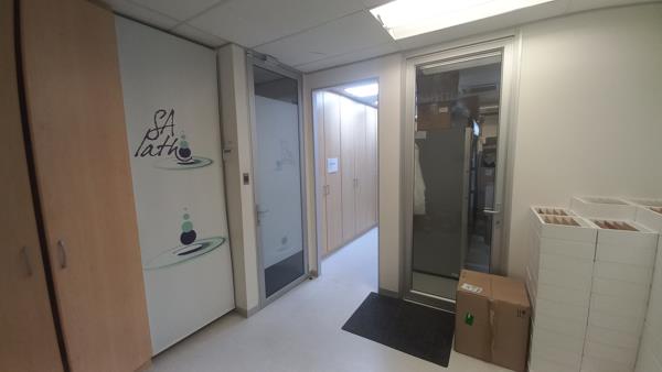 Currently configured as a laboratory, the space features a reception area, dedicated office spaces, bathroom facilities, and a fully equipped kitchen. The office is fully air-conditioned and boasts a high-speed fibre optic connection, making it ideal for a variety of business uses.