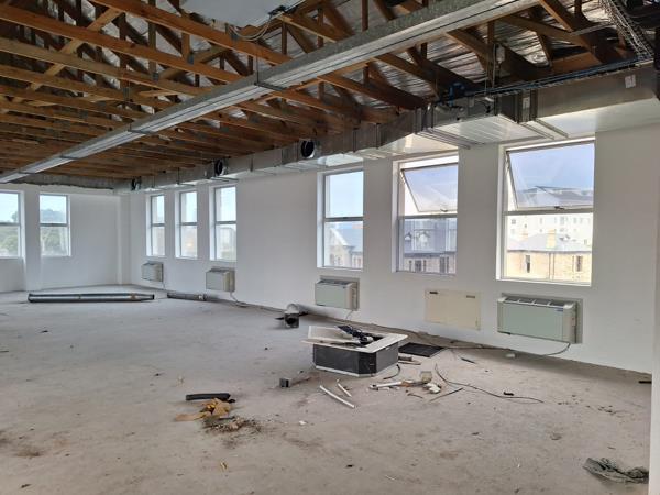 The available space is 434 square meters, located on the third floor, and offers stunning views including beautiful mountain scenery that adds a unique touch to your work environment. The layout is spacious and flexible, giving you the freedom to design the space to fit your business, whether you need open-plan areas, private offices, meeting rooms, or collaborative spaces.