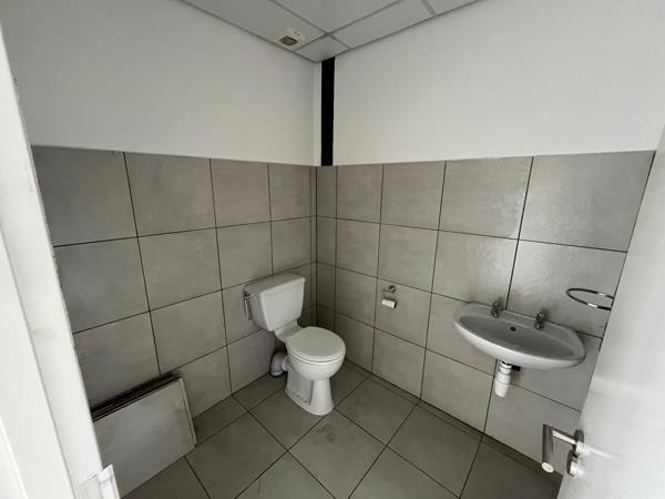 A two-level office setup provides flexibility for administration and management. The ground floor includes its own kitchenette and bathroom facilities, while the warehouse is serviced by a second bathroom for staff convenience.