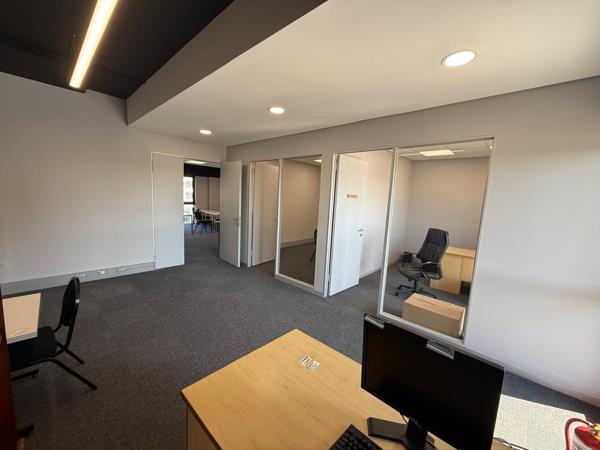 This well-appointed office space in Sandown offers a professional and functional layout, featuring a welcoming reception area and three separate private offices. The unit is fibre-ready, ensuring fast and reliable internet connectivity for seamless business operations. Located in a sought-after and centrally positioned business park, the property enjoys excellent access to major routes and surrounding amenities. Ample natural light floods the space, complemented by carpet flooring throughout, creating a comfortable and productive work environment.