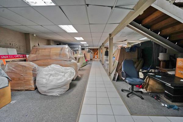 The basement includes a roller shutter door, offering convenient access for loading and deliveries. This functional space can be used for storage or additional operations depending on your business needs.