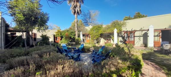 The well-planned Buildingslayout form a square with a huge courtyard, a lovely well-planned garden I cannot imagine the sight and smell when all is blooming in the center a gathering area, to one side a sparkling splash pool and a Geselig Pergola and meeting table, part of the square are neat one bedroomBathroomBuilt-in Cupboards guest rooms x 6 which face onto the courtyard offering privacy, enjoyment and a sense of exclusivity.
