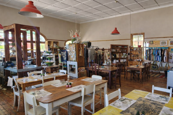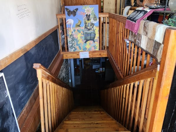 The upper floor features a functional and well-planned layout, including a retail space offering products such as biltong and drowors, mohair socks, and blankets. Additional amenities include a coffee station, office space, bathroom facilities, and storerooms for storage and preparation.