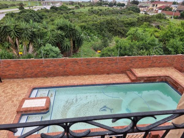A staircase leads you to the 2nd floor, where the main bedroom is situated. The room has built-in cupboards and a very inviting en-suite that creates a relaxing atmosphere with a lovely corner bath. It also has a shower, basin and toilet. The main feature of this room is the balcony overlooking the pool area, which has a stunning sea view.