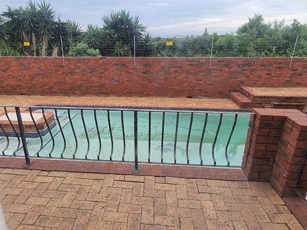 The home is very secure and is completely walled, has electric fencing, an alarm system as well as a remote access gate. There is enough parking space for at least 5 vehicles inside the property with a double lock up garage, a single garage and a paved parking bay. One of the main features of this house is the stunning, large, modern kitchen with ample cupboard space, scullery, pantry, gas stove with an extractor fan and electric oven as well as a beautiful built-in wine cabinet. There is also a separate dining room and living room.