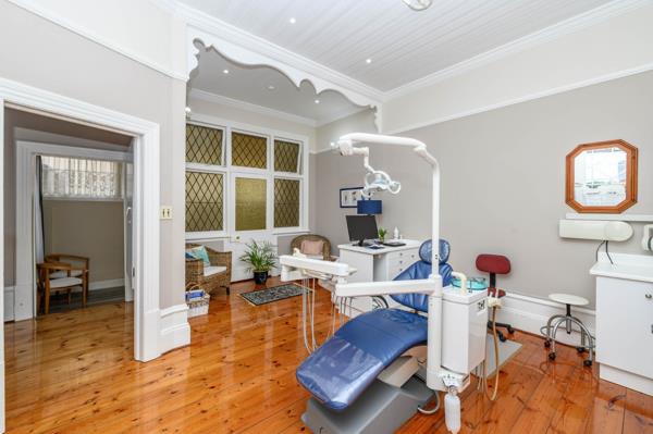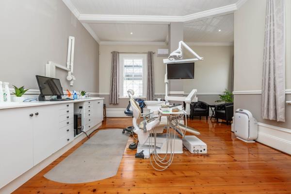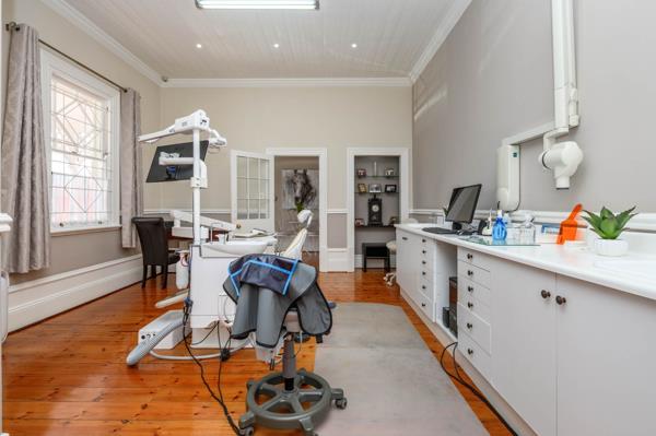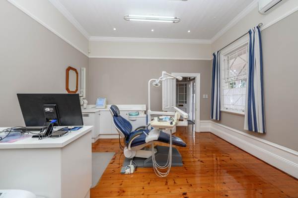 The interior features a welcoming reception and waiting area, two spacious offices perfect for consultation or treatment rooms, and two smaller offices ideal for administrative or auxiliary use. A fully equipped kitchen and lunch area ensures staff comfort, while two bathrooms provide added convenience for both clients and staff.