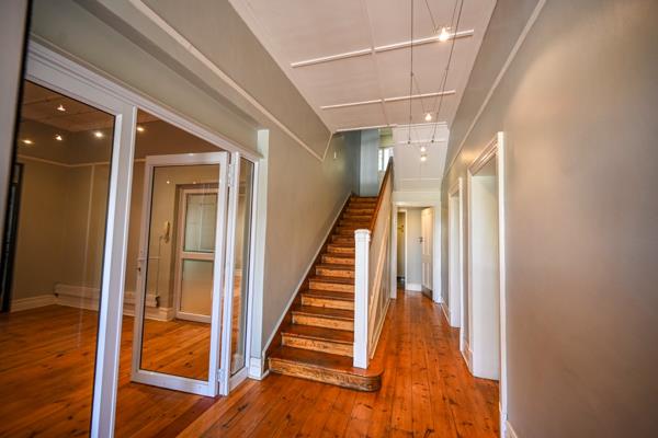 The property boats a beautiful wooden floors and is a double storey building with ample office space, reception and storage and a braai and entertainment area. The property offers secure shade parking for at least 10 to 12 vehicles . Security is not a problem as the property is equipped with an alarm system, beams, electric fencing and a secure electric gate.