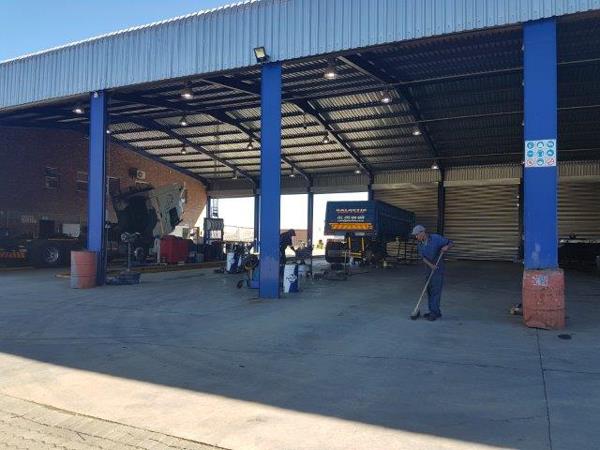 Double story workshop with 7 drive through bays 6 include service pits. Entrances are secured with industrial roller shutter doors with wash bay, offices, ablution and Concrete Chassy Bending points. Original workshop fully equipped for trailer manufacturing includes shade parking ports.