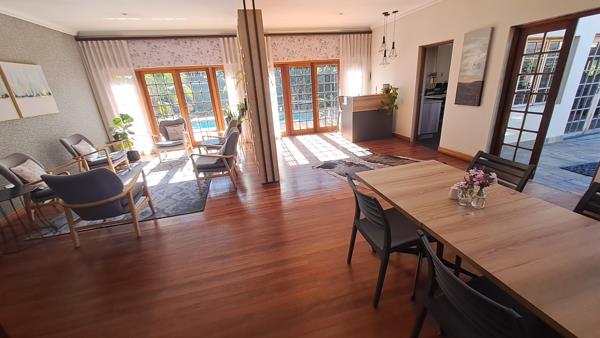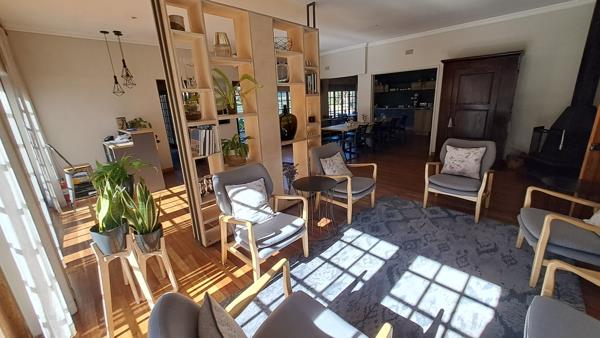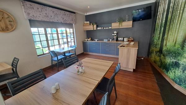 The main building offers a welcoming open-plan reception arealiving room with direct access to the outdoor pool area. Connected to the living room is a spacious dining room, adjacent fully-equipped kitchen, ideal for preparing delicious meals to delight your guests. The kitchen features catering equipment, an electrical stove, and a loose-standing gas stove. It also includes a scullery with access to the adjacent guest rooms, separate guest units four self-catering units, laundry facilities, and separate male and female guest toilets.