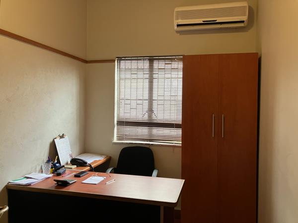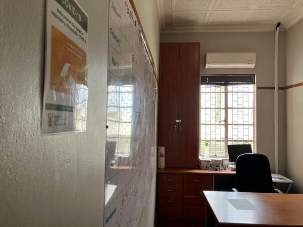 This building offers a beautiful reception and 8 airconditioned offices, kitchen, archive room and bathroom facilities. Shaded customer parking spaces in front and staff parking at the back, wendy house and excellent security.