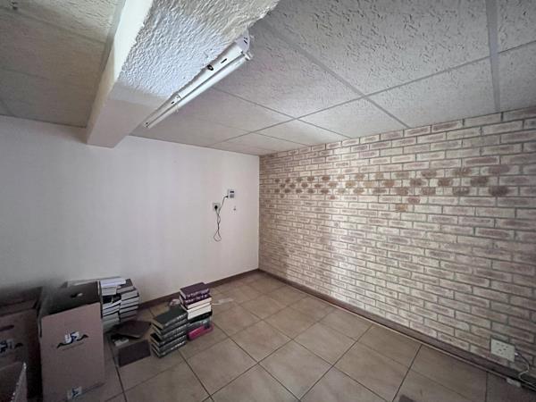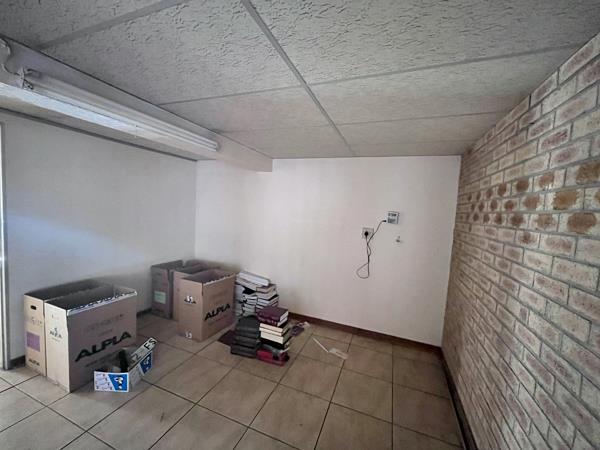 This 132-square-meter office block offers premium A-grade office space in a sought-after area. It features four well-appointed rooms with tiled floors and blinds, a modern kitchen with built-in cupboards, two bathrooms with tiled floors, a basin, and a toilet, a welcoming reception area, covered carports, and a versatile storeroom with built-in cupboards.