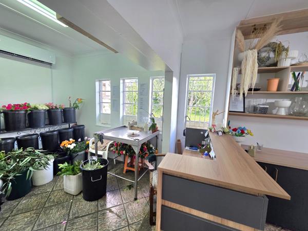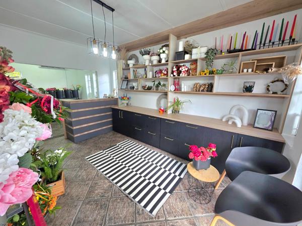 The one sections is used for a hair salon and the other section for a flower boutique.
