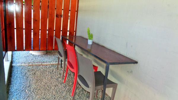 Flat 1 (sleeps 3) - air conditioner, open plan lounge/dining with kitchenette & bedroom, bathroom (double shower, basin, separate toilet), single bedroom area, splash pool