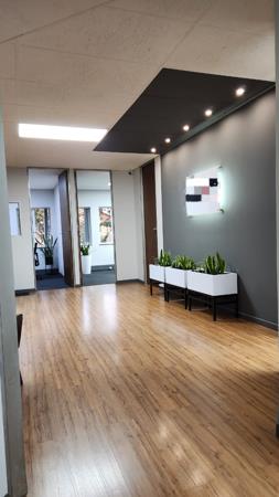 This 56 square meter office suite comprises out of a reception area, 4 private offices, 1 open-plan offices, 1 boardroom, a kitchen, and a set of communal ablutions. Employees will have access to great public transport provided by the Centurion Gautrain Station along with Gautrain bus stops stationed within walking distance of the office. The property also has easy access to and from the N14 and N1 highways and other main arterial roads, making it easy to reach several areas. The property is ideally located between the Centurion Gautrain Station and Centurion Mall. Centurion Mall hosts various tenants such as checkers, Dis-Chem Pharmacy, Pick n Pay and Mug & Bean among many more.