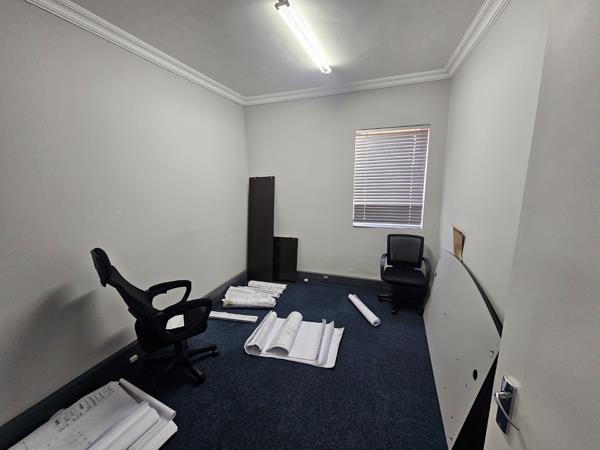 It offers 150 squares under roof. Outside braai area with cover. Boardrooms, 5 big offices and large open plan area. Kitchenette and bathroom and Reception area.