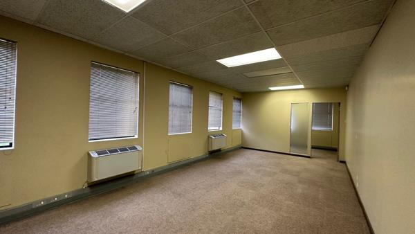 The building comprises multiple office floors with a mix of private offices, open-plan work areas, boardrooms, kitchens, and ablution facilities. Interiors feature neat carpet and tiled flooring, modern air-conditioning units, fibre connectivity, window blinds, and large windows that allow for ample natural light throughout the space.