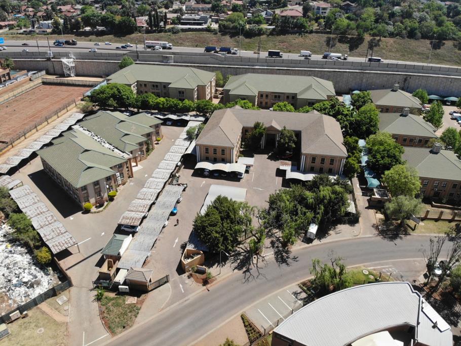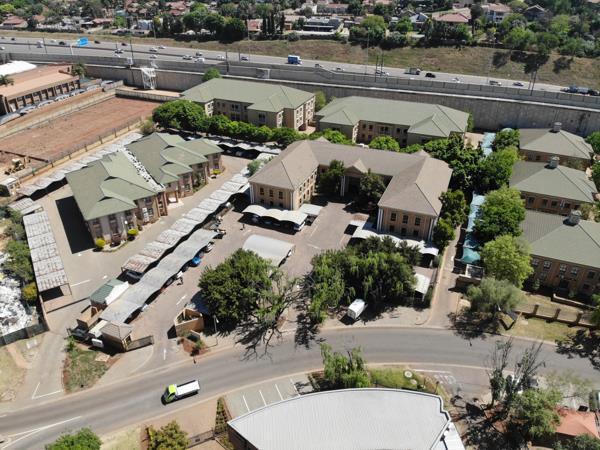 A free-standing, double storey office building comprising a reception, private and open plan offices, board room, lab workshop, kitchen, storerooms and cloakrooms with the outbuildings comprising a guard house and dry-refuse disposal area.