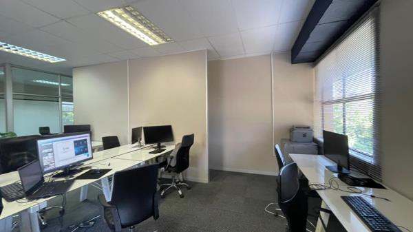 Highveld Office Forum is located within the well-established area of Centurion, situated at Witch-Hazel Avenue based in the booming suburb of Highveld. This Commercial Office Suite comprises out of a 183 square metre space consisting of a reception area, closed offices, an open plan working area, boardrooms to conduct general meetings, a modern kitchen and communal ablutions that are shared among other tenants. The office showcases neat carpet flooring, blinds, fibre connectivity, air-conditioning and big windows allowing ample light to brighten up the office space.