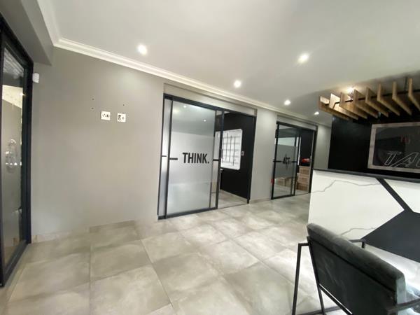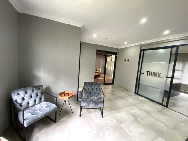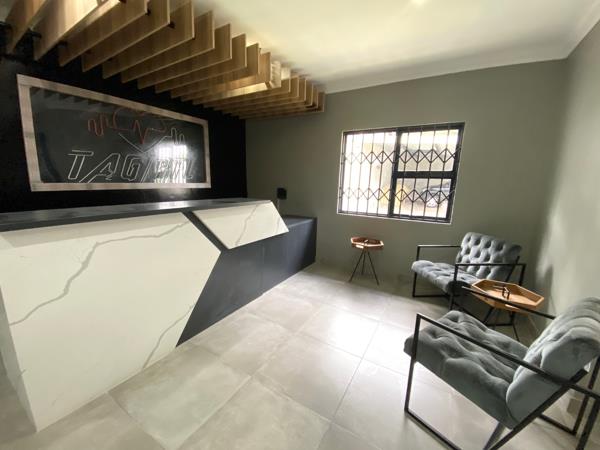 The office building comprises an attractive reception, well-appointed lounge or waiting room, boardroom, office space, unisex cloakroom with four cubicles, conference or events hall with built-in wet bar/cafeteria and braai, training room, walk-in strongroom, and more. The office space consists