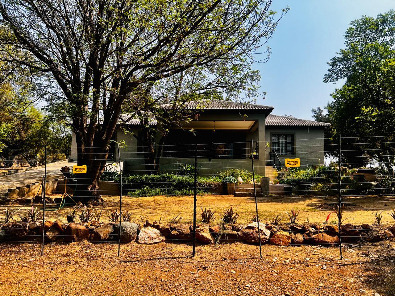 This lovely 22 hectares farm on a beautiful hill view offers tranquility and peace. It consists of 4 freestanding houses. 1st house offers 2 bedrooms, 1 bathroom, lounge , dining, kitchen, garage and it is completely off Eskom grid. 2nd house offers 2 bedrooms, 1 bathroom, lounge, dining, and kitchen. 3rd house offers 3 bedrooms, 2 bathrooms, lounge, dining, and kitchen. 4th house offers 4 bedrooms, 2 bathrooms, lounge, dining, kitchen, inverter, and swimming pool. 5 staff accommodation and flatlets. Storage room with a borehole inside. The entire farm is secured with an electric fence. A space to farm live stock and vegetation space with irrigation system. Farming equipment available at a cost of R80 000.00 and live stock available at a cost of R48 000.00