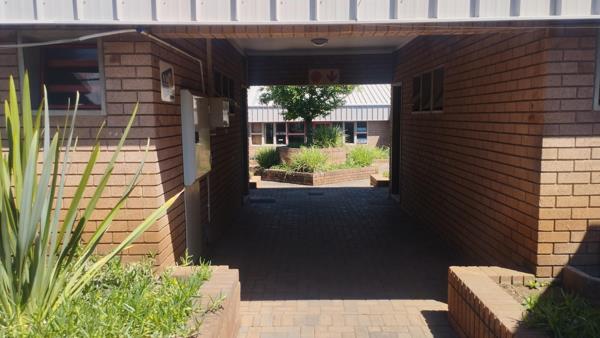 The surrounding unused land is entirely paved with brick. Access to the office area is controlled by a remote-operated motorized