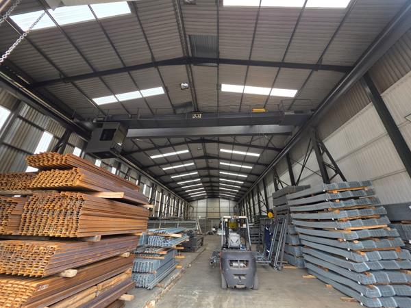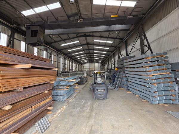A well-maintained 2,300m2 industrial property is available for sale at R11 million excluding VAT. This versatile warehouse/factory offers excellent height and is equipped with a 7.5-ton overhead crane and a roller shutter door, providing efficient access and handling for heavy-duty operations.