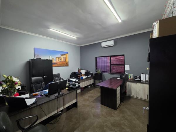 The property features a 150-amp three-phase power supply, ideal for a range of industrial uses. The office component is neat and air-conditioned, complete with boardroom facilities, a staff kitchenette, and ample ablutions. There is also plenty of parking available for both staff and visitors, making this a practical and professional space for your business operations.
