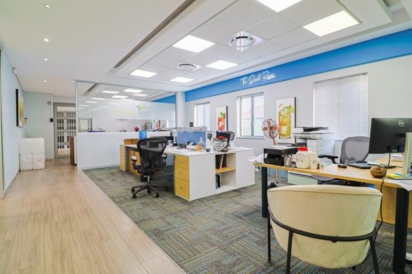 Own a modern 229 m office in the prestigious Fish Eagle Office Park, perfectly designed for professional businesses. This first-floor unit offers a stylish open-plan layout with reception, boardroom, 3 offices, kitchen, storeroom, and private bathrooms.