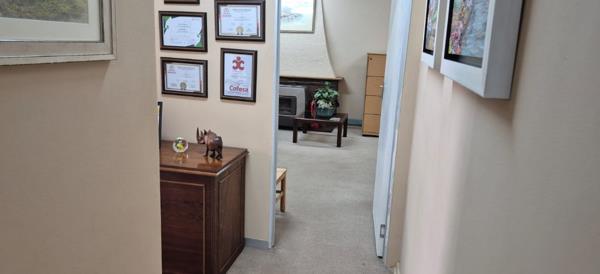 Inside, the well-designed layout includes three offices, a reception area, and a meeting room, providing ample space for patient consultations, administrative work, or staff meetings. A full kitchen and two bathrooms ensure convenience for employees and visitors alike.