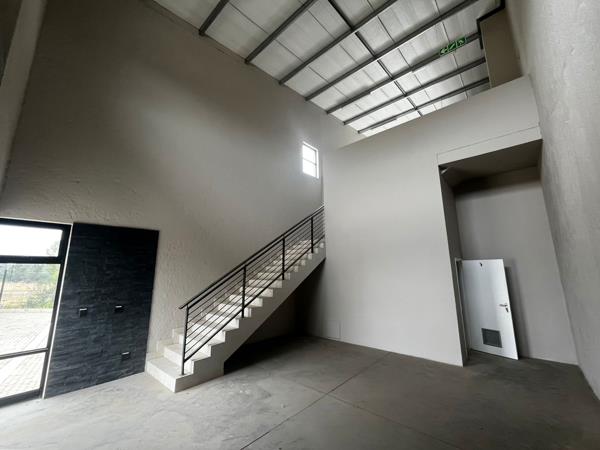 This brand-new 141m2 industrial unit for sale in the sought-after Morehill area is situated in a secure park with 24-hour security. Designed for both functionality and comfort, the unit includes a spacious reception area, a large open-plan office, a kitchenette, and modern ablution facilities for staff and visitors. With excellent height to the eaves, natural light throughout, and a robust three-phase power supply, this unit is ideal for a variety of industrial applications. It features a large on-grade roller shutter door for easy access and an expansive balcony offering a unique view of the Formula-K race track. Conveniently located just off the Snake Road offramp, it provides seamless access to the N12 and R21 highways for excellent connectivity.