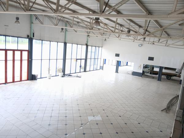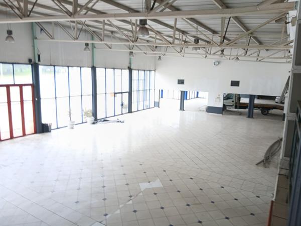 This versatile commercial property in Anderbolt, Boksburg, offers an exceptional opportunity for various business operations. The modern-style building features extensive glass frontage, providing excellent natural light and prominent display potential, ideal for retail, showroom, or office applications. Inside, the expansive layout boasts high ceilings with exposed trusses and durable tiled flooring, creating a spacious and adaptable environment.
