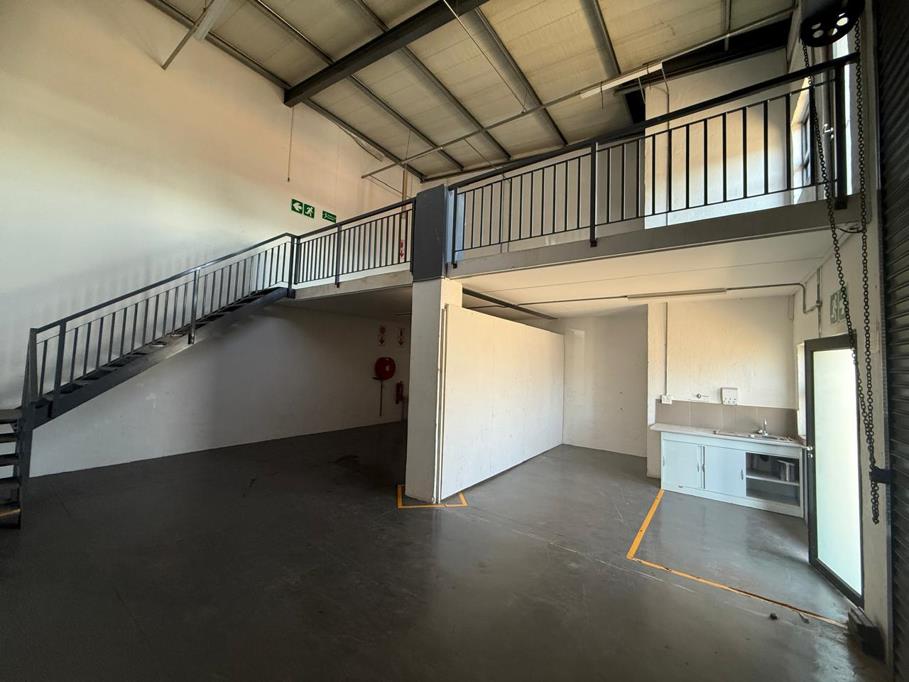 Pristine mini industrial unit measuring 125sqm available for purchase at R1,270,000 excluding VAT. The unit comprises of a warehouse with good height and a large roller shutter door allowing for quick and easy access. Completed with a small staff kitchenette, ablutions and a mezzanine / office component. Situated in a secure business park complex.