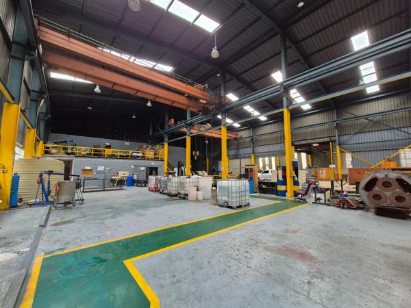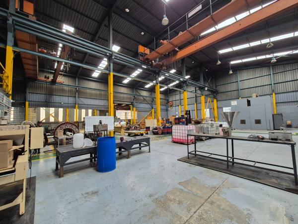 This 1,200m2 freestanding warehouse offers a prime industrial opportunity in the heart of Driehoek, Germiston, with excellent access to all major highways. The warehouse is divided into three functional bays, featuring high ceilings, abundant natural light, and a large roller shutter door. Two 10-ton overhead cranes and a 150-amp three-phase power supply support efficient loading, offloading, and industrial operations, making it ideal for manufacturing, logistics, or storage.