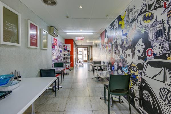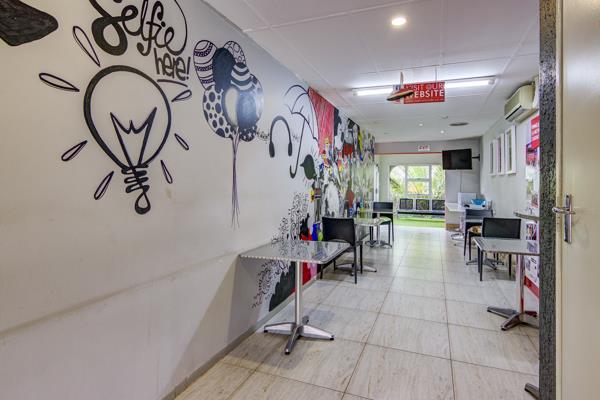 This ground floor unit is wheel chair friendly. Tiled entrance hall with vending machine, coffee station, blinds and camera. 1 Large open plan office or training room to accommodate approximately 24 tables with chairs, camera surveillance and 2 aircons with blinds. 1 Tiled office with blinds and camera. Patio and 1 bathroom.