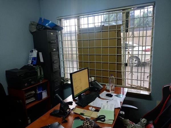 This conveniently built property has all a business owner could want and more! This building comes with a detailed reception room, 11 private offices, 3 open offices, a much needed storeroom, a staff kitchen as well as toilet facilities, 2 large warehouses perfect for storage of your stock and this property comes with blinds throughout the office building.
