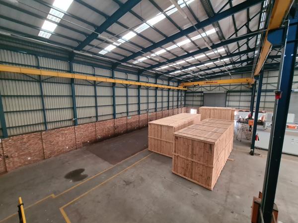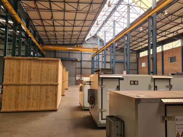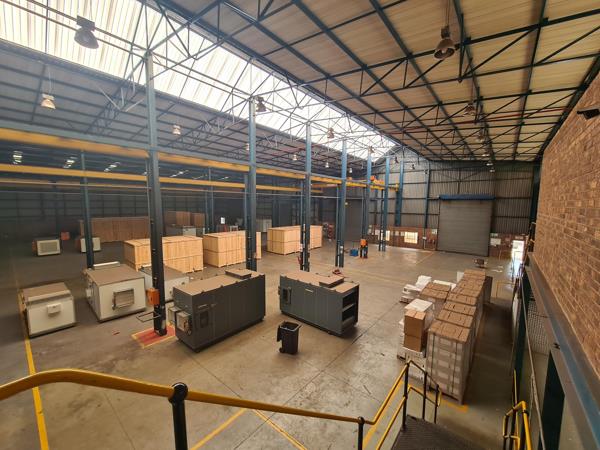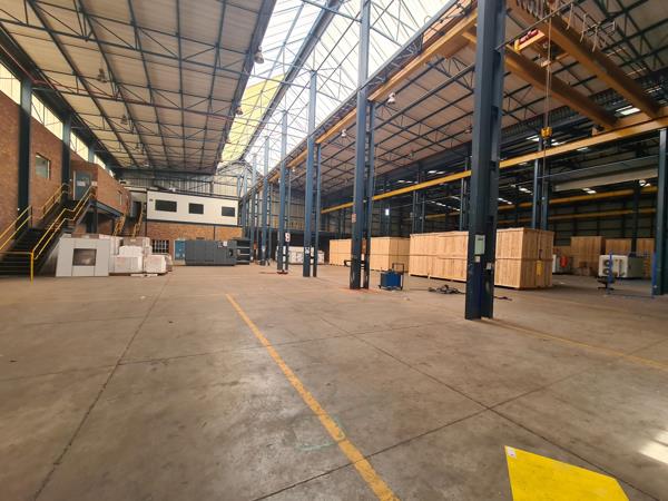 This freestanding A-grade industrial property in Spartan offers a strategic location with excellent accessibility and visibility. The 3,608m2 facility comprises 2,295m2 of warehouse space, a 185m2 mezzanine, 574m2 of offices, and over 500m2 of support areas including a canteen, change rooms, and storerooms. The warehouse features four large roller shutter doors, high eave clearance, 10-ton and 12.5-ton cranes, and 700 amps of 3-phase power. A 1,670m2 yard provides ample truck circulation and parking within a secure, access-controlled site. The double-volume office component offers modern workspaces with full amenities and covered and open parking bays. Located just 4 km from O.R. Tambo International Airport and near the R21 and R24 freeways, this property is ideal for manufacturing or logistics operations and ready for immediate occupation.