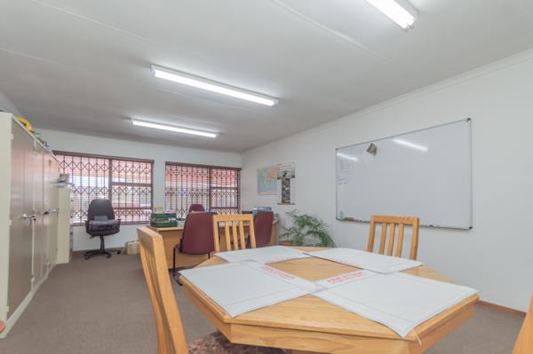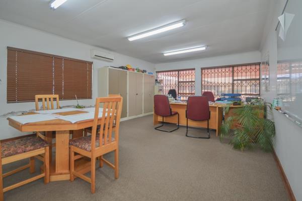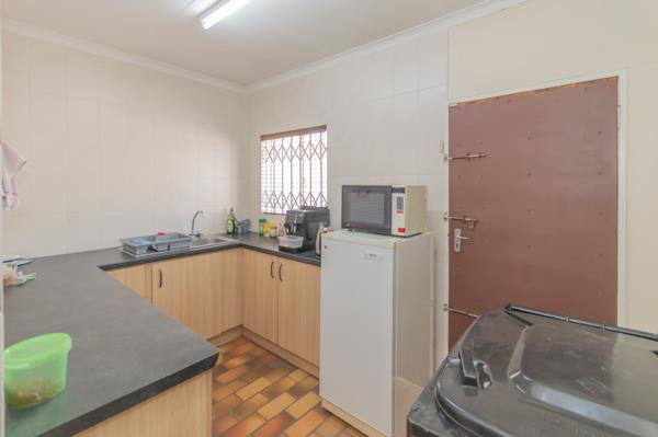 Outside, theres a versatile building that can serve as an office or flatlet, featuring an open-plan lounge, kitchen, and bathroom. The back area provides secure parking for up to eight vehicles.