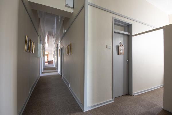 Upon entering, you are welcomed into a large, inviting reception area ideal for client interactions and administrative flow. The building features six spacious, carpeted offices, all fitted with air-conditioning, ensuring a comfortable working environment year-round.