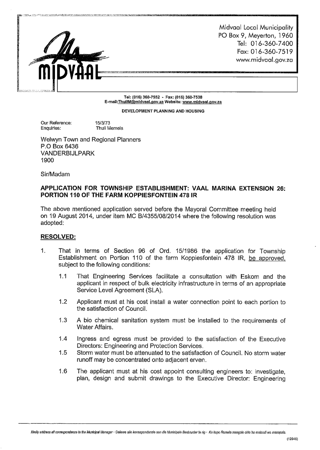 VAAL DAM PRIME DEVELOPMENT PROPERTY - VAAL MARINA .