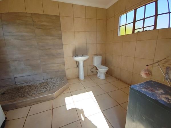 a dining room, open plan modern kitchen and scullery, a second reception room,referred to as the sun lounge and three spacious bedrooms, one of which has an en-suite and the other is a guest bathroom. The entire house is fitted with modern equipment and built in cupboards. There is also a beautifully laid out entertainment building and serves as a guest house. The entrance leads to an open plan lounge, with built-in braai area, modern fitted kitchen, three bedrooms, one with an en-suite and a guest loo. The entire place has established green lawns that are well kept. The surrounding are very neat and tidy. There are designated carports in both the houses to park the vehicles. The entire compound is well laid out and is specifically designed to suit each sections convenience.