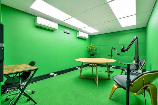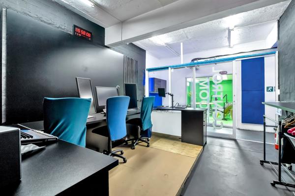 Ground floor reception desk for greeting clients, built in countertop with a coffee machine, kitchenette. Lounge area, conference facilities, 2x TVs. Doors opening onto courtyard with built in braai area and herb garden planters. Photobooth, 3x bathrooms. Storeroom. Independent shop with its own entrance perfect for a trendy cafe or retail boutique.