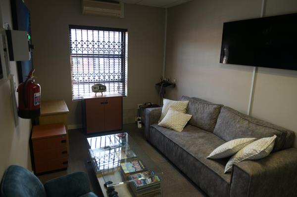 Well maintained ground floor unit available in a sought after office park. The current fitout includes a welcoming reception area, small meeting room, three private offices of which one is a soundproof studio, a kitchen and ablution facilities. Flexible drywall partitions allow for easy reconfiguration to suit your business needs. The unit further opens onto a private patio, providing a pleasant breakout space. There is a small storeroom with 5 x parking bays and 2 garages attached to the unit. The park offers: