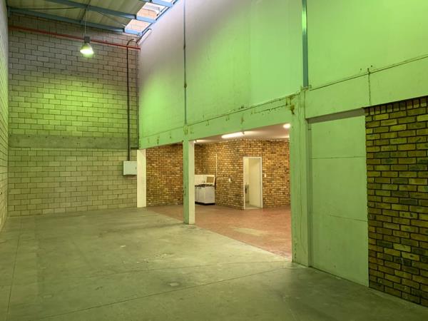 This mini unit measures 302sqm available either for rental at R21,140 per month plus costs or for purchase at R2,265,000 plus VAT. The warehouse has good height and a large roller shutter door. Very neat office component on the first floor with a welcoming reception area present.